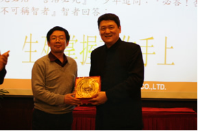 演讲期间江永雄先生对皇冠企业集团的成立、发展、壮大、扩张的艰辛而辉煌的历程做了生动而诙谐的介绍,并用朴素的语言阐述了企业经营的真谛。