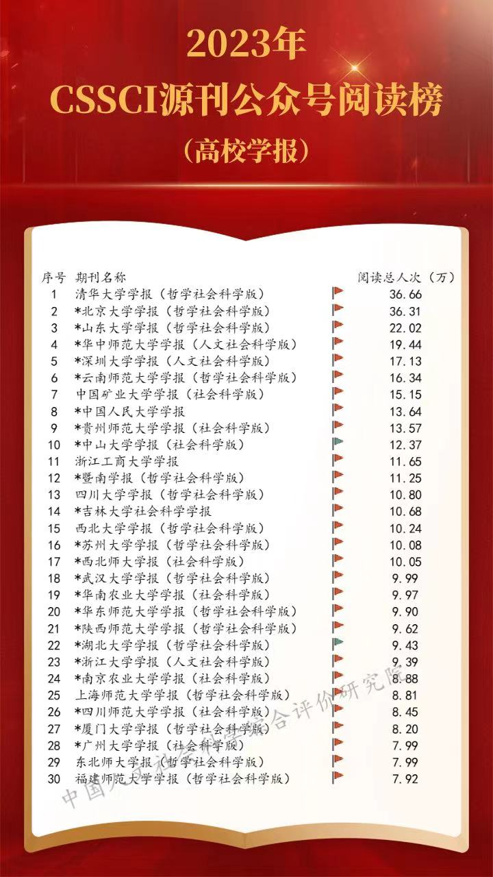 Journal of Tsinghua University (Philosophy and Social Sciences): The Most Read WeChat Official Account of CSSCI Journals in 2023